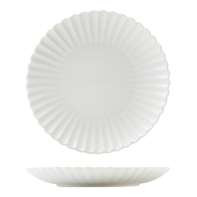 - Incise Vitrified Porcelain Scalloped Coupe Plate.